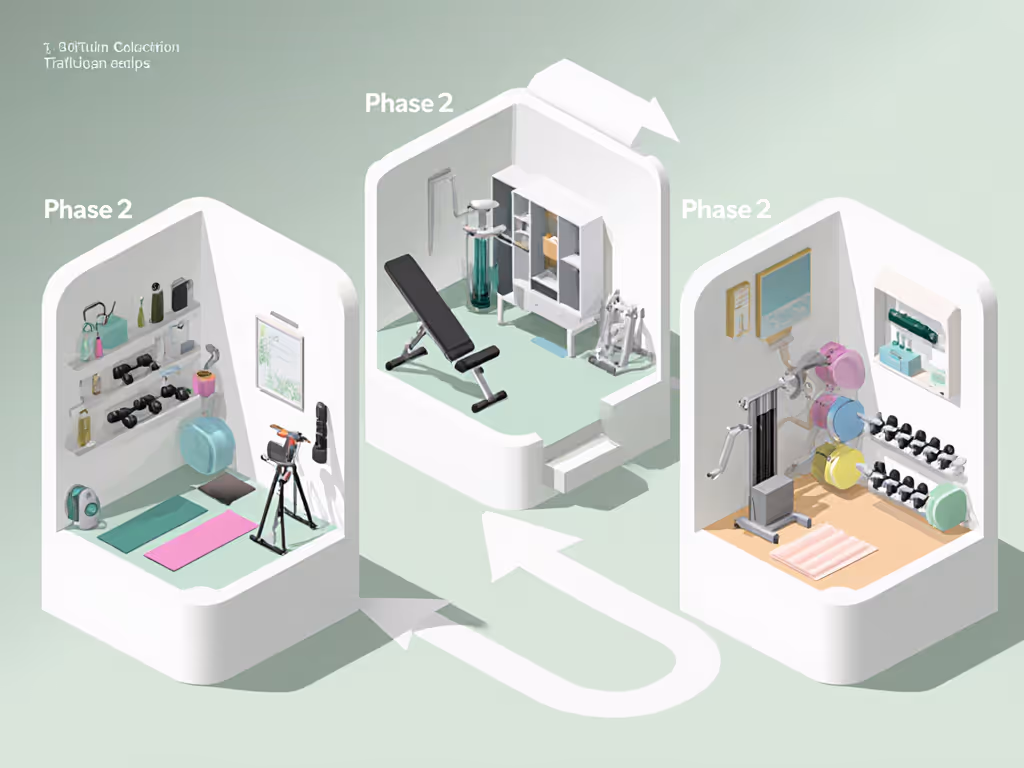 The magic happens when Phase 2 equipment doesn't get replaced but enhanced. Your pelvic floor fitness tools should evolve with you, not get discarded. I've helped clients create "stealth gym" layouts where equipment tucks into closets or behind doors, maintaining multi-use room functionality. For tidy, modular setups, explore these space-saving storage solutions.