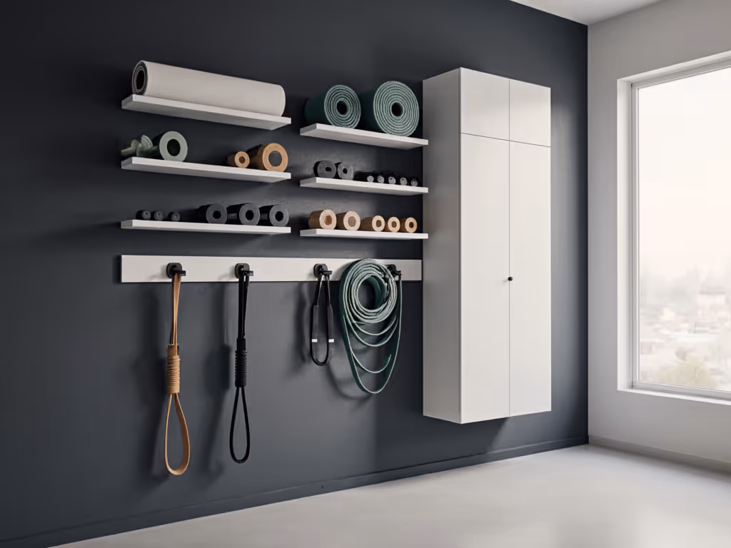 Wall-mounted storage solutions frequently deliver superior long-term value because they eliminate floor-level obstacles that disrupt movement patterns. In noise-sensitive environments, they also prevent vibration transmission through subfloors (a hidden cost factor rarely calculated in subscription comparisons). For product picks and layouts that keep gear off the floor, explore our space-saving home gym storage solutions.